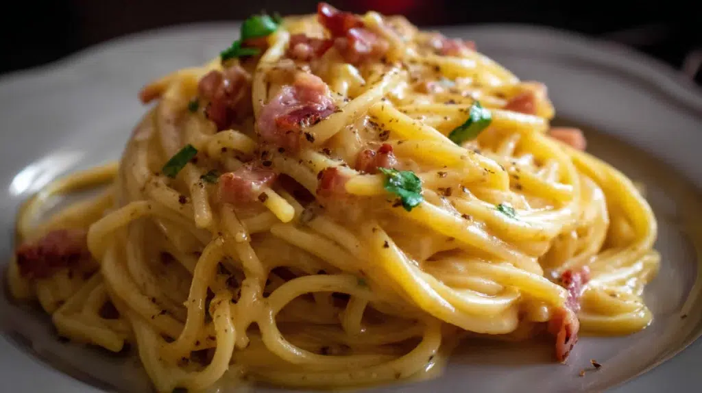 Carbonara originated in Rome after World War II, developed from the powdered eggs and bacon that American soldiers brought to a starving Italy, combined with pasta and local cheese into a dish that became one of the most beloved in Roman cooking.